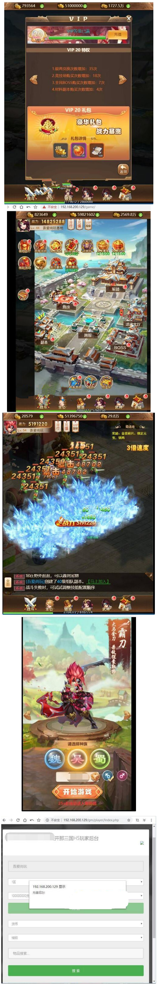 模板下载网云资源 » 换皮H5手游[放开那三国]虚拟机镜像一键启动服务端+在线GM后台及授权后台等
