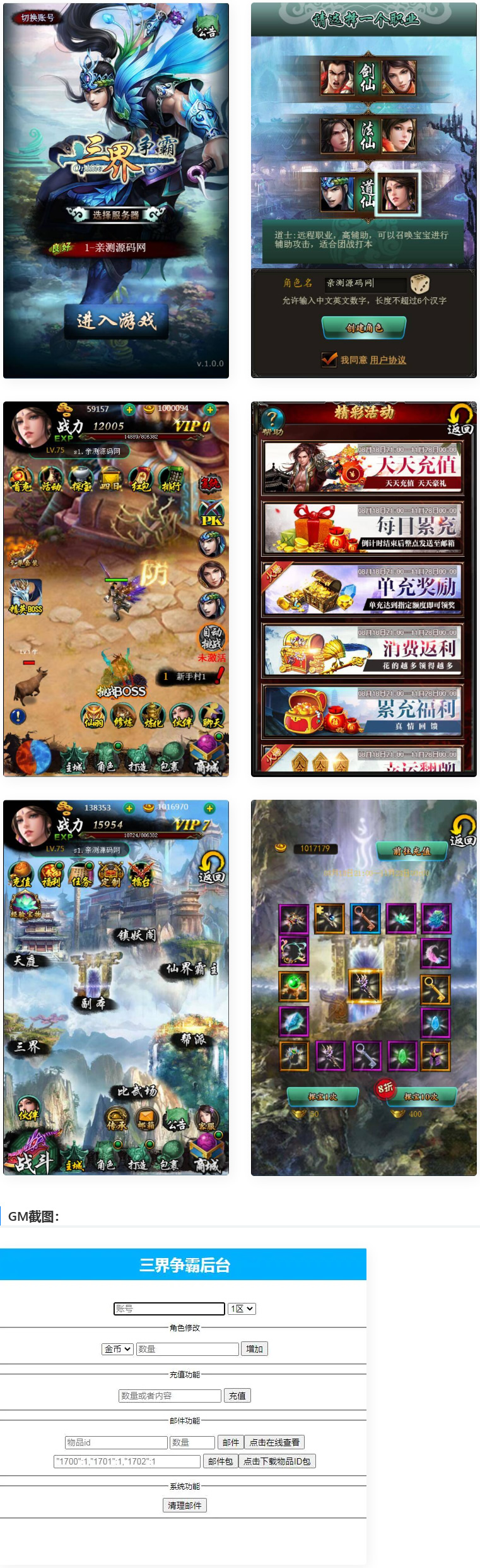 三网H5游戏三界争霸H5+视频教程|Win一键既玩服务端+GM后台