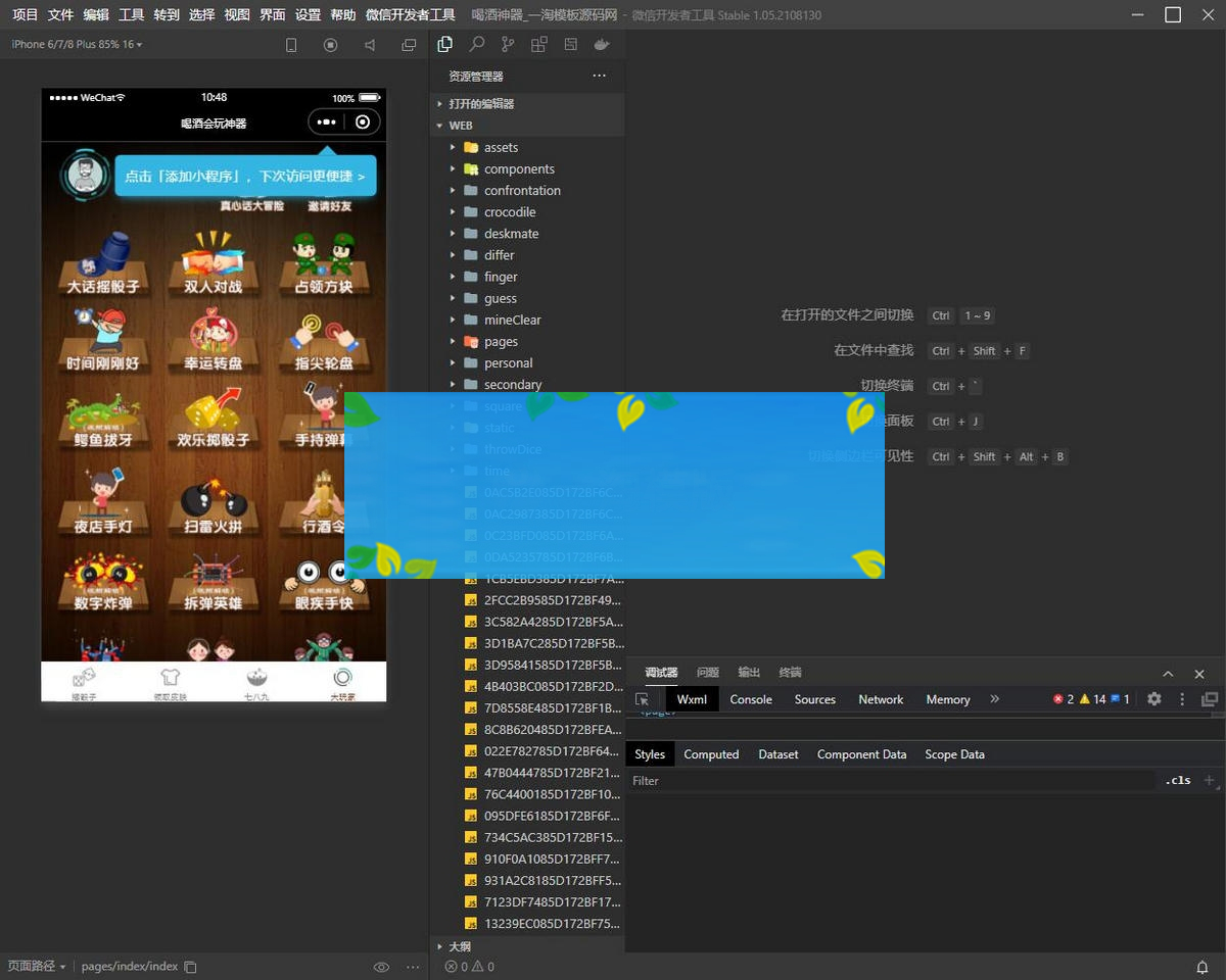 大家只需要解压源码,然后用微信开发者工具打开源码