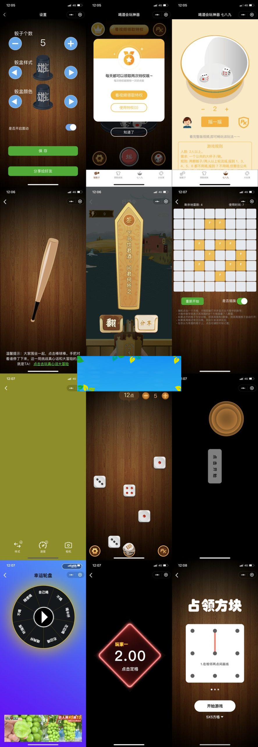 该款小程序还支持换筛盅皮肤哟,拥有多种皮肤看激励视频解释